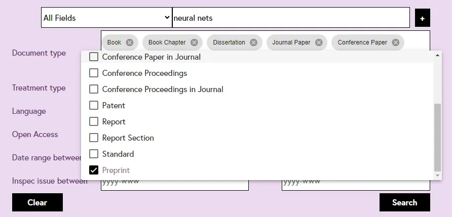 Users will now be able to search for this valuable content more easily by using the Document Type facet or including Preprints in an Advanced Search query. For example, Inspec records from arXiv now appear under the ‘Preprint’ document type.